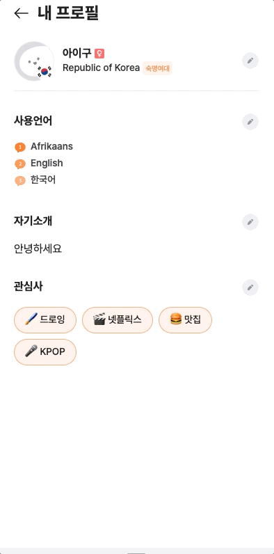 mypage - edit (๊ด์ฌ์ฌ,์ธ์ด) 3. ํ์ธ ํ๋กํ